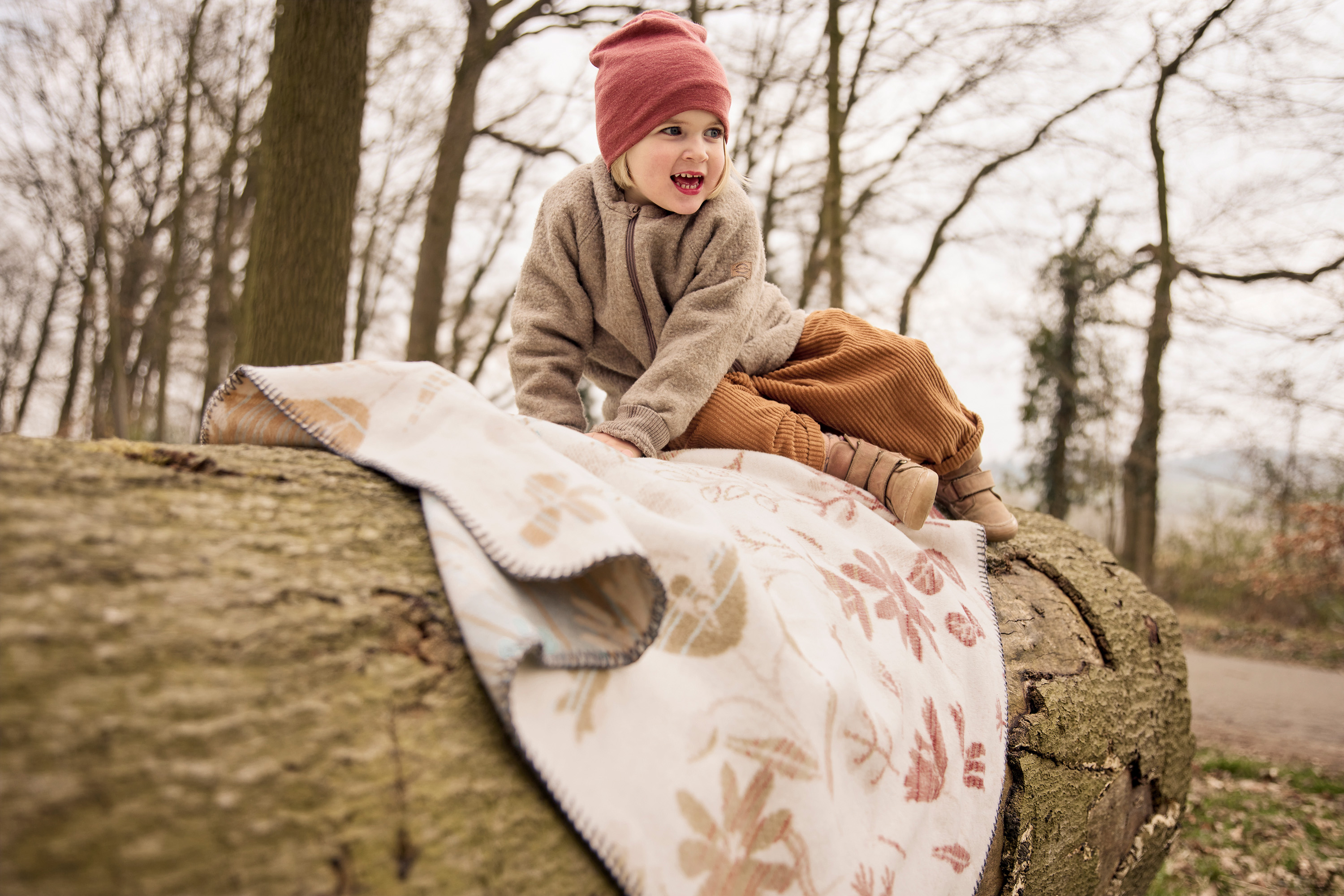 Welches Kind sammelt nicht gerne Blätter und andere Naturmaterialien im Wald. Wenn es nach einem erlebnisreichen Spaziergang nach Hause geht, wartet dort die passende Kuscheldecke und spendet wohltuende Wärme. Das florale Dessin der Kinderdecke aus pflegeleichter Baumwollmischung ist in hellen Naturtönen mit Blau, Rot und Grün gehalten und mit einem farblich abgestimmten Zierstich eingefasst. Mit ihrer praktischen Größe von 75 x 100 cm eignet sie sich auch als Babydecke für Ausflüge mit dem Kinderwagen.